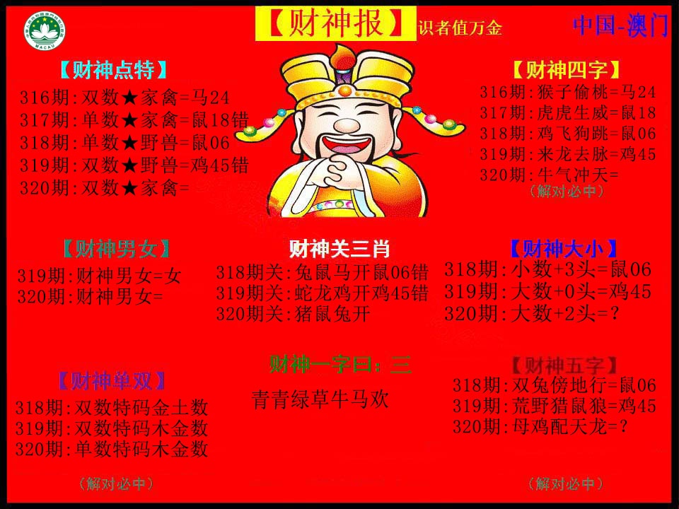 | 320期: 买啥都中 【天肖天肖天肖】开:?00准 |