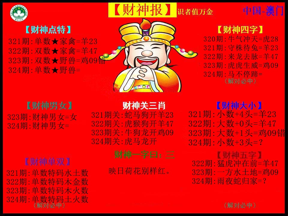 | 326期: 买啥都中 【家肖家肖家肖】开:?00准 |
