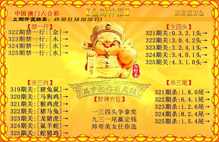 | 325期: 买啥都中 【男肖男肖男肖】开:虎04准 |