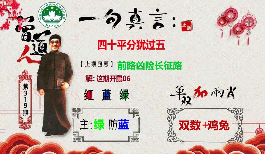 | 318期:半波特码【绿双】开:鼠06准 |