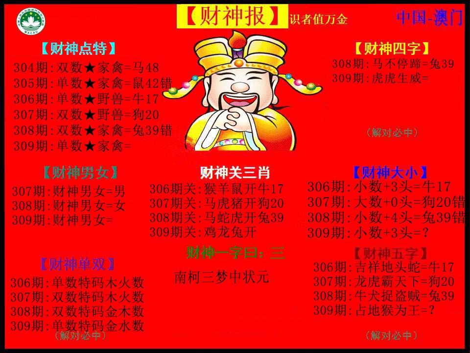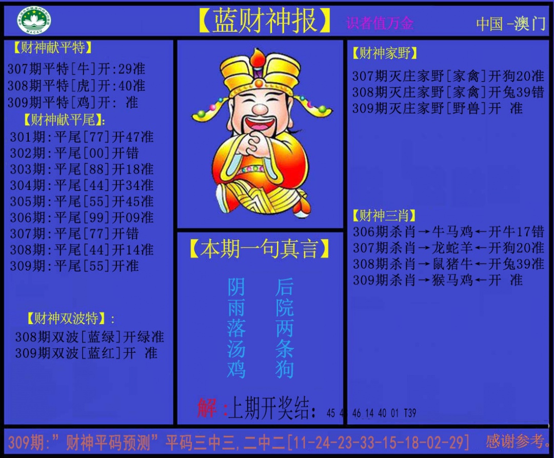 | 308-310期 | 一肖〖羊羊羊〗 | 308期下注五千错 | 开:?00准 |
