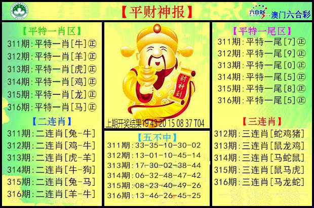 | 316期 | 〖狗鼠鸡羊马猴〗实现梦想的强料 | 开:?00准 |