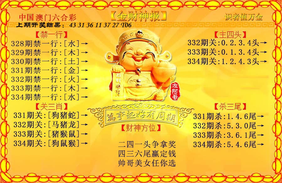 | 334期: 买啥都中 【野兽野兽野兽】开:猴46准 |